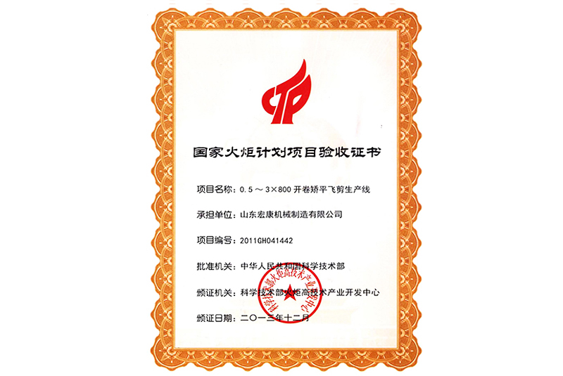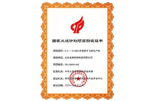 國家火矩計(jì)劃項(xiàng)目驗(yàn)收書